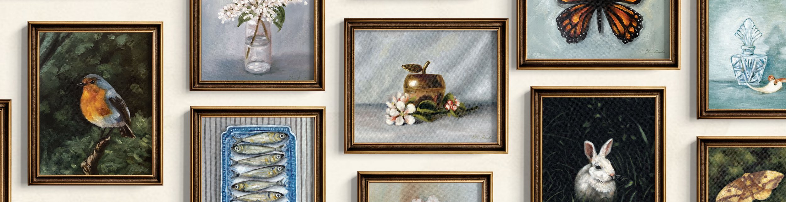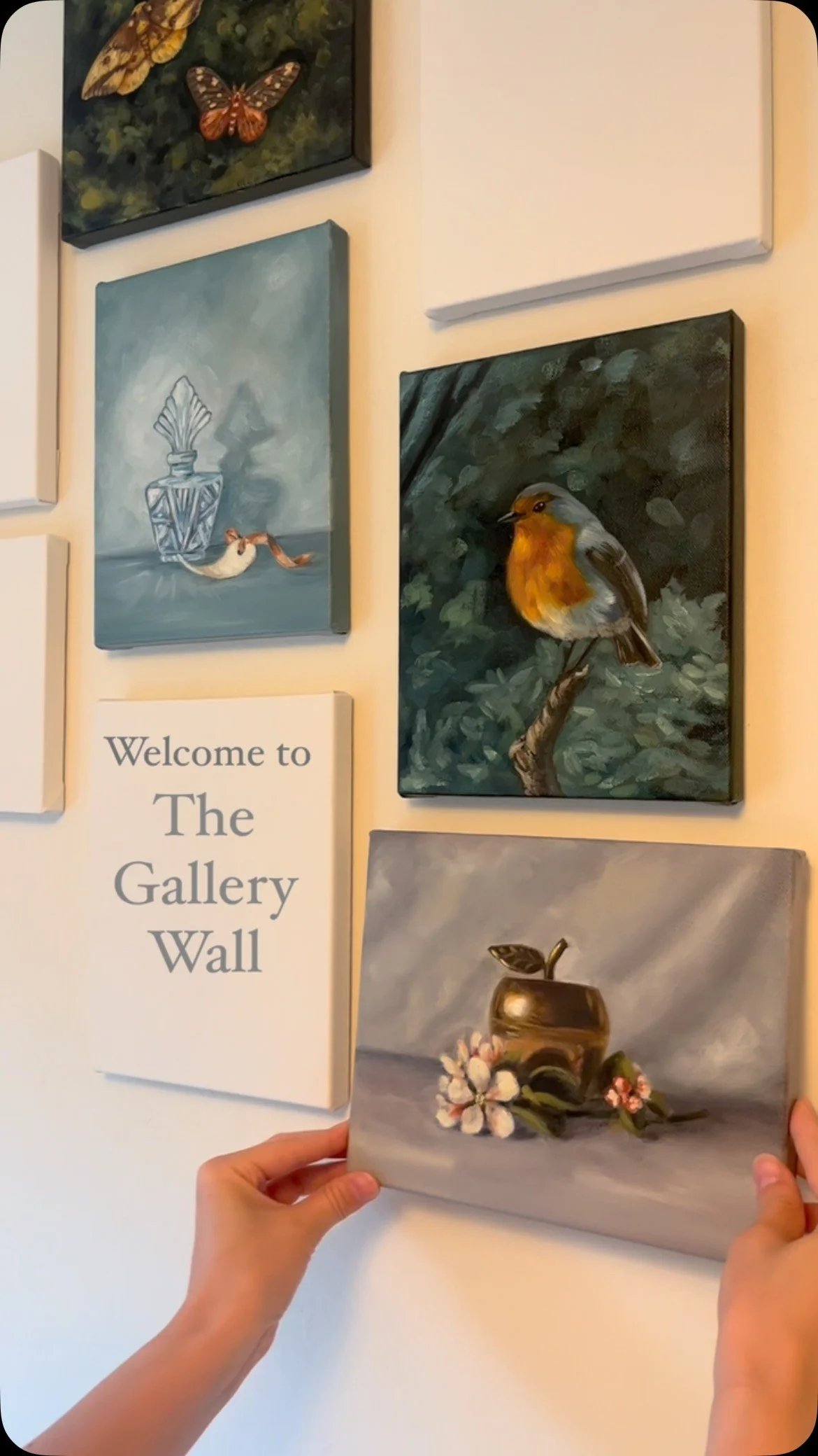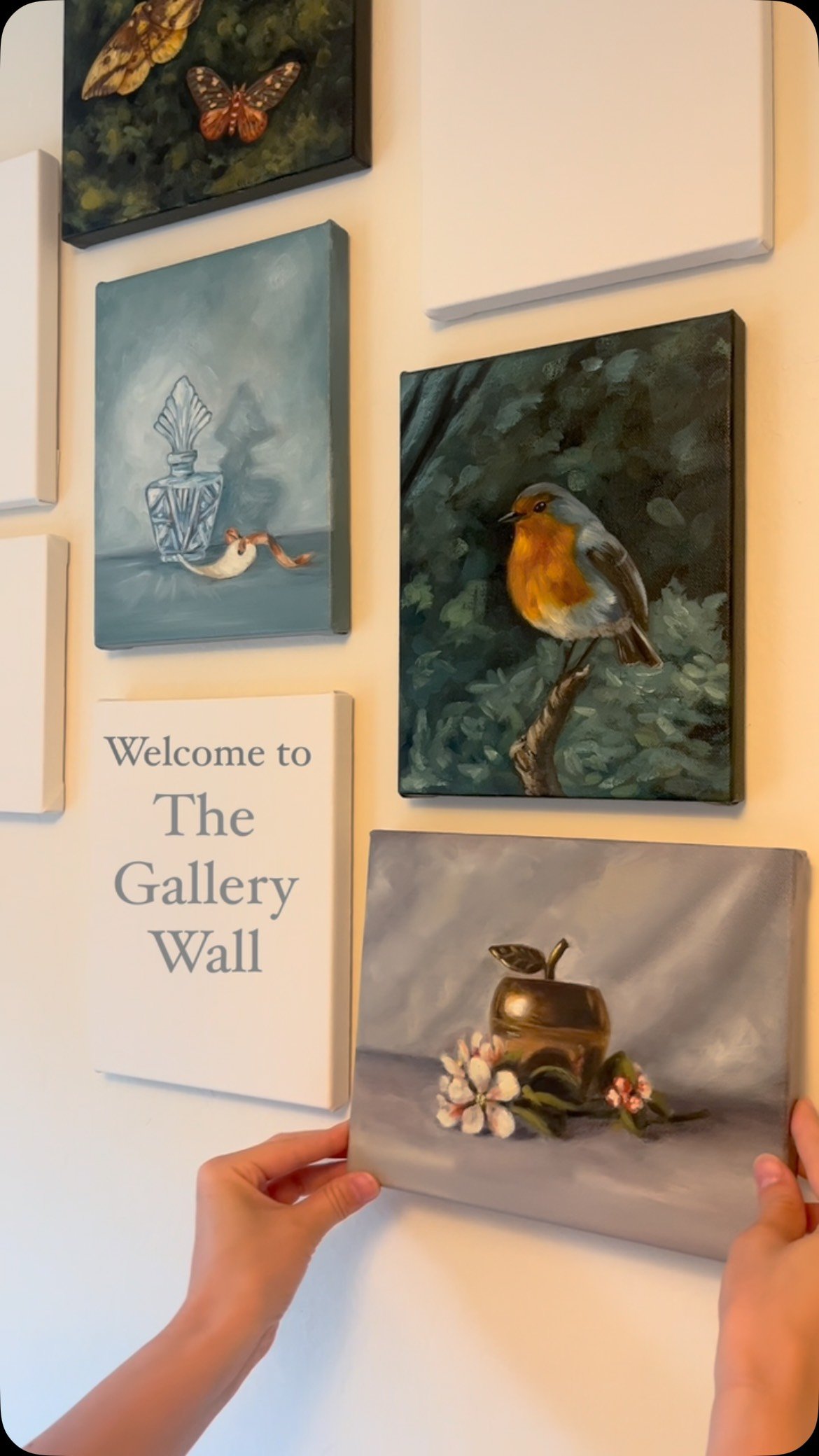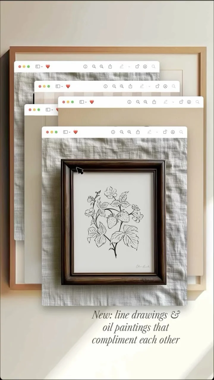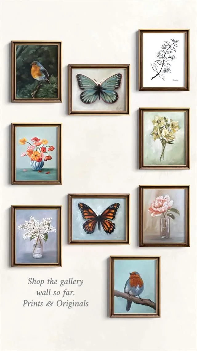 My current gallery wall project is a growing collection of hand-painted oil paintings designed to feel like stories for your home. Each piece is created slowly, with the hope that it becomes part of someone else’s everyday life.